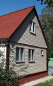 Чтобы преобразить эту дачу и увеличить её полезную площадь, "Зодчий" выполнил пристройку к дому третьим фронтоном. В процессе работ была демонтирована старая кровля, вместо неё устроена новая, мягкая. У дома появилась новая водосточная система. Стены дачи и цокольная часть фундамента были обшиты сайдингом.
