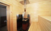 На этот раз специалистам «Зодчего» нужно было довести до логического завершения строительство старой бревенчатой бани. Компания взялась за это. Так в бане постепенно появился новый пол, перекрытия с утеплением, стены и потолки, отделанные вагонкой, новые деревянные окна и двери. В парной строители устроили полки и установили печь-каменку, ставшую сердцем бани. Всё строение было укрыто металлочерепицей с профилем «Монтеррей». Теперь хозяева могут наслаждаться лёгким паром в любое время года.